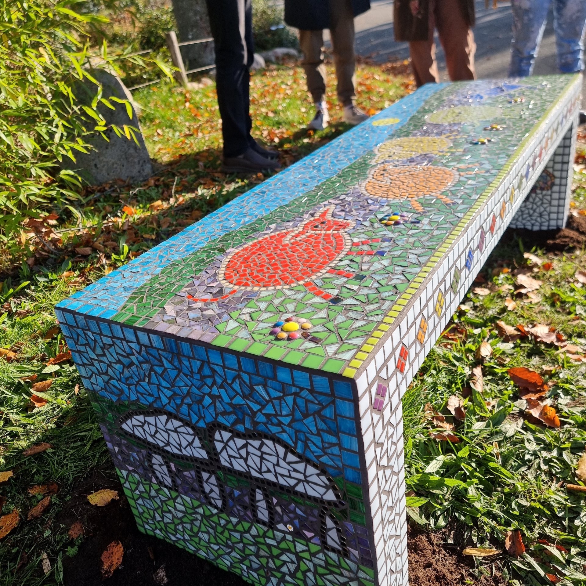 Regenboogweek: het mozaïekbankje aan de Oude Kampweg in Exloo.